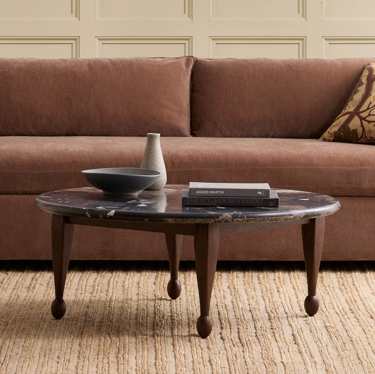 This marble coffee table is the perfect centerpiece to elevate the tone in your living room edit.